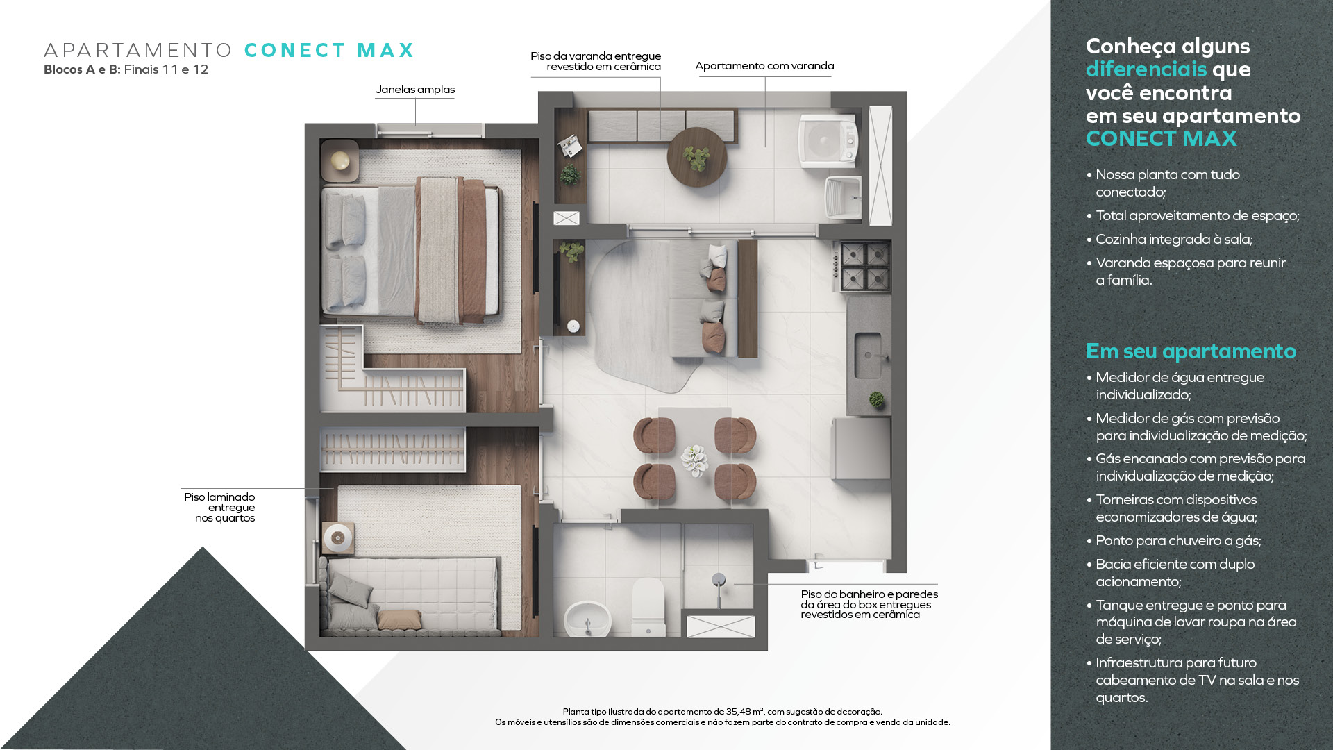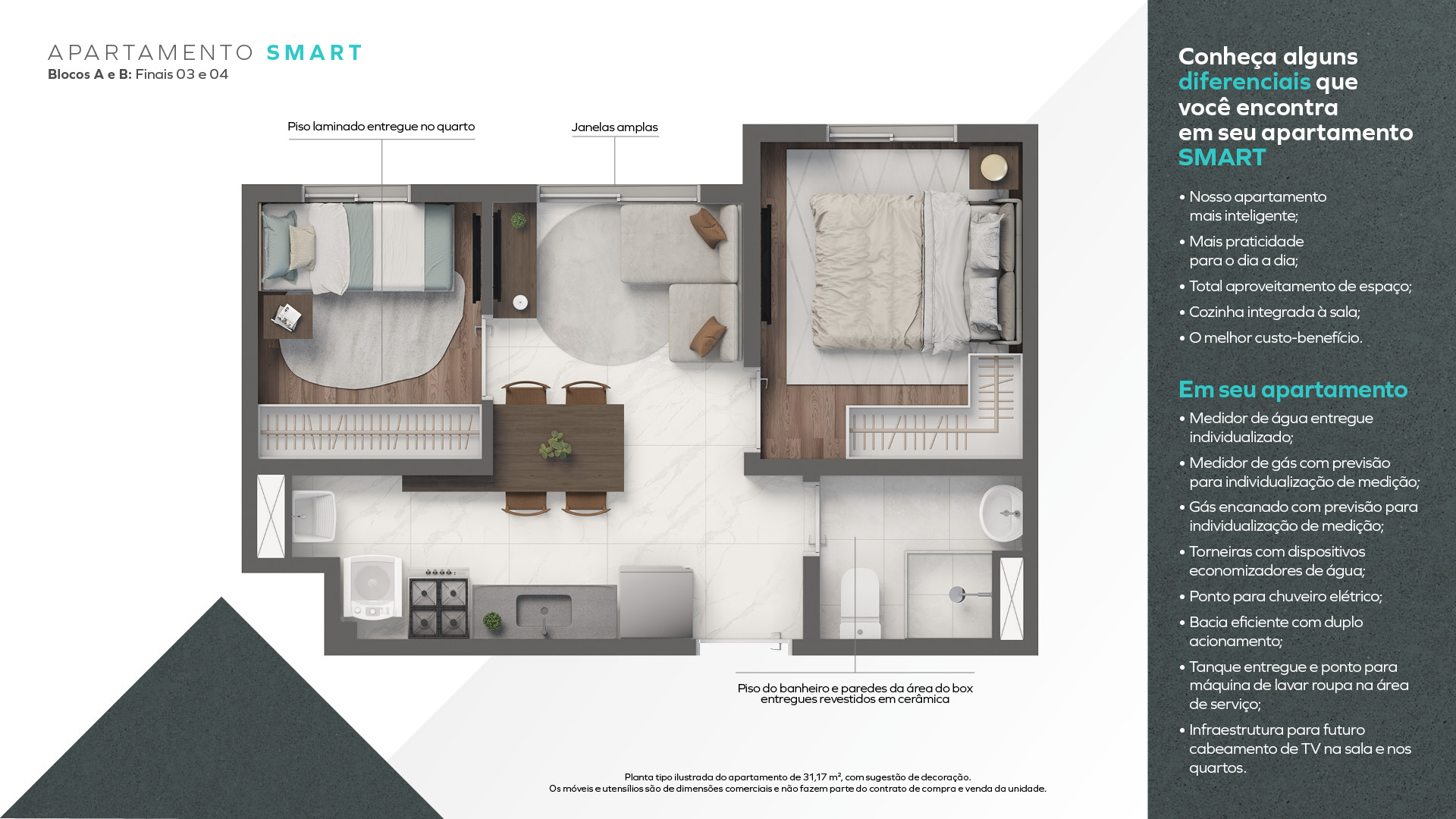 O condomínio conta com piscina, academia, coworking, brinquedoteca, rooftop com churrasqueiras, pet place, minimercado 24h, lavanderia OMO e segurança reforçada, garantindo conforto e praticidade no dia a dia.